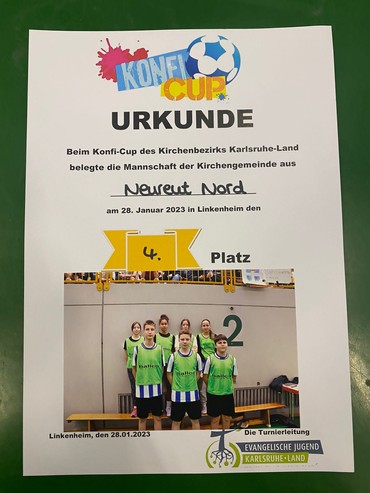 Mit viel Leidenschaft und einem tollen Kämpferherz haben sich unsere KonfirmandInnen einen tollen vierten Platz beim diesjährigen Bezirkskonfi-Cup erarbeitet. 14 Mannschaften aus dem Kirchenbezirk Karlsruhe-Land waren angetreten um im Fußball diejenige Konfi-Gruppe auszuspielen, die dann den Bezirk im landesweiten Konfi-Cup vertritt. Gelungen ist das Graben-Neudorf, die sich im Finale durch setzten, allerdings auch mit etlichen VereinsfußballerInnen antrat. Aus Neureut-Nord trat eine Team an, bei dem lediglich einer auch sonst die Fußballschuhe schnürt und am Samstag von zwei Handballerinnen und zwei Handballern sowie einer Basketballerin unterstützt wurde. Die Besonderheit beim Modus besteht darin, dass immer zwei Personen des anderen Geschlechts ebenfalls auf dem Feld sein müssen.