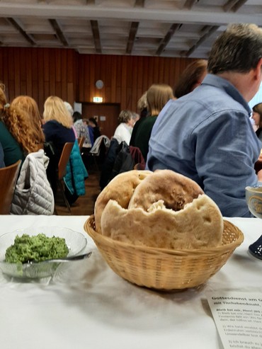 Während beim Tischabendmahl an Gründonnerstag schnell der Platz knapp wurde und eilends Tische und Stühle herbei geschafft wurden und so das Gemeindehaus zu einer sehr langen Tafel mit Fladenbrot und Wein verwandelte, machte an Karfreitag der Regen einen Strich durch die eigentliche Planung: Statt draußen gedachte die Gottesdienstgemeinde zur Todesstunde Jesu in der Kapelle an das Leiden und auch manch eigene Verfehlung. In der Stille endete der Gottesdienst nach dem Segen - und diese Stille begleitete auch diejenigen, die an Ostersonntag bereits um 6.00 Uhr einen Platz in der dunklen Kirche fanden: Mit Tagesanbruch verbreitete sich das Osterlicht und erfüllte auch die Kirche mit einer besonderen Atmosphäre - an die sich sicherlich nicht nur Täufling Lily lange erinnern wird. Dass anschließend alle Plätze beim gemeinsamen Frühstück im Gemeindehaus besetzt waren, sorgte für ein ganz freudvolles erstes Osterfest. Freudvoll ging es beim Familiengottesdienst ein paar Stunden später weiter, bei dem der Chamäleonvogel von der Ostergeschichte erzählte - und dann auch jedes Kind rund um die Kirche etwas zum Mit-Nach-Hause-nehmen finden konnte.