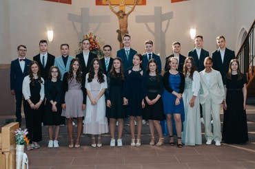 Zunächst ein bisschen zaghaft, dann aber doch sehr textsicher bewegten manche KonfirmandInnen und ihre Gäste beim festlichen Konfirmationsgottesdienst am vergangenen Sonntag die Lippen zur Musik von Udo Lindenberg und dem Rapper Apache. Pfarrer Würfel hatte den Song „Komet“ in den Mittelpunkt seiner Predigt gestellt und spann den Bogen von Jesu Worten des Weinstocks über das Lieblingslied der KonfirmandInnen im vergangenen Jahr, „10 000 Gründe“. „Ihr seid nicht Apache, sondern habt Euer eigenes Leben, das sicherlich dann gut gelingen kann, wenn ihr die Verbindung zu Gott nicht abreißen lasst.“, betonte der Pfarrer in seiner Predigt. Anschließend würdigte er jeden Konfirmand und jede Konfirmandin mit ganz persönlichen Worten und sprach ihnen dann den Segen Gottes zu. Musikalisch mitgestaltet wurde der Gottesdienst eindrucksvoll von Kirchen- und Posaunenchor, Orgel und einer Band - und ließ die 500 Mitfeiernden anschließend sehr beschwingt und sichtbar bewegt in den festlichen Tag gehen. Das nächste Highlight wartete bereits am nächsten Morgen: Gemeinsam mit Pfarrer Würfel nutzen die jungen Menschen den gesetzlich vorgeschrieben freien Tag nach ihrer Konfirmation für einen Ausflug in den Europapark nach Rust.