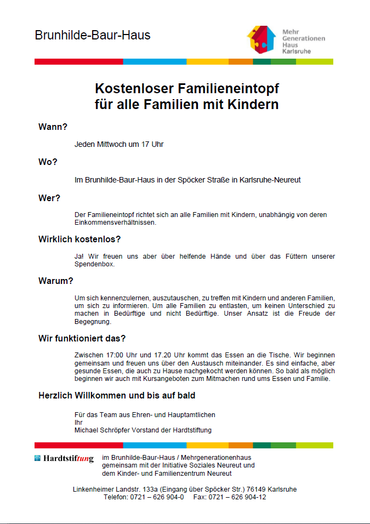 Kostenloser Familieneintopf für alle Familien mit Kindern
