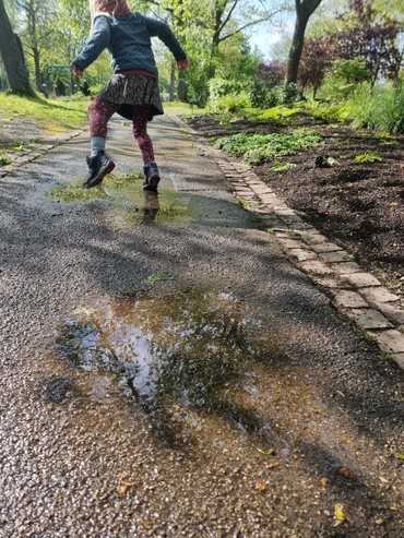 „Trauern fühlt sich für Kinder manchmal wie Pfützenspringen an.“, sagte Trauerbegeleiterin Simona Boerman beim Workshop für Kinder und ihre (Groß-) Eltern am vergangenen Donnerstag auf dem Hauptfriedhof Neureut. Kinder springen in die Pfütze und sind für einen Moment traurig, können aber oft dann im nächsten Moment wieder ganz glücklich sein. Eine Erfahrung, die auch viele der 35 Teilnehmenden bestätigen konnten. Pfarrer Würfel hatte zu diesem besonderen Seminar eingeladen und mit Simone Boermann, Sabine Pechlof-Brutscher als Leiterin des Familienzentrums Karlsruhe-Hardt, Bestatter Daniel Schütz und Friedhofsmitarbeiter David Ferryman kompetente Gäste für das Mitmachen begeistern können. Von ihrer Erfahrung ließen sie Anteil nehmen und luden Erwachsene und Kinder gleichermaßen dazu ein, ihre Erfahrungen zu teilen.
