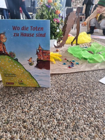 Ein Angebot, von dem viele Gebrauch machten. Die Kinder entdeckten parallel eine eigene Geschichte und malten ihre Vorstellungen vom Leben nach dem Tod. Im zweiten Teil des Workshops machten sich alle auf Erkundungstour auf dem Friedhof: Suchten besonders schöne Grabsteine oder entdecken ungewöhnliche Namen. Außerdem konnte jeder und jede eine Tulpe auf ein Grab legen. „Es war toll, dass man sich einmal intensiver mit diesem Thema beschäftigten konnte.“, resümierte eine Teilnehmerin nach einem gemeinsamen Lied und dem Schlusssegen und auch für Pfarrer Würfel ging der Plan auf: „Wir wollten das