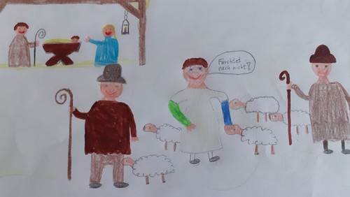 Den Auftakt machte Anfang Dezember ein „Weihnachtskrippenbild“ zum Ausmalen. Die Bilder wurden anschließend in der Kirche ausgestellt.