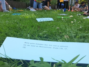 Nachdem die Covid-Beschränkungen etwas gelockert wurden und auch eine Konfi-Freizeit möglich war, machte sich der aktuelle Konfi-Jahrgang zusammen mit Pfarrer Würfel und acht TeamerInnen auf den Weg nach Mannheim: Immerhin eine kleine Mini-Konfi-Freizeit konnte trotz der Termindichte am Schuljahresende gestaltet werden - und so war trotz der Kürze der Zeit einiges geboten: Unter dem Motto "von der Erde zum Universum" machten sich die jungen Menschen auf die Suche nach den Sternen und Highlights in ihrem Leben auf der Erde, stärkten sich beim Abendmahl am Rhein in besonderer Atmosphäre, testeten Kräfte und Können beim Spieleabend "Schlag die Teamer" und besuchten am Sonntag einen außergewöhnlichen Gottesdienst beim ICF Mannheim.