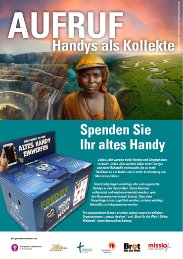 Im Rahmen der ökumenischen Aktion „Handys als Kollekte“ rufen die Evangelischen Landeskirchen und Katholischen Diözesen in Baden-Württemberg gemeinsam mit missio und der Handy-Aktion Baden-Württemberg zur Sammlung alter Handys und Tablets auf. Ziel ist es, wertvolle Rohstoffe zu recyceln, Geräte wiederaufzubereiten und gleichzeitig kirchliche Hilfsprojekte zu unterstützen.