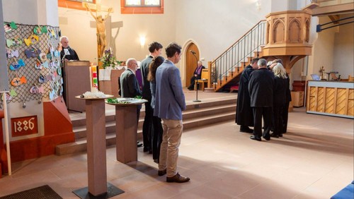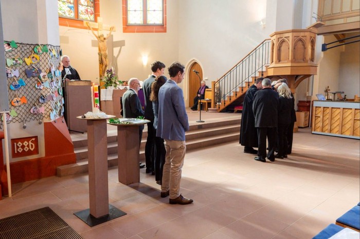 Über 70 Jubilare waren gekommen, manche von weit her. 25 Jahre lag die Konfirmation bei den jüngsten Jubilaren zurück, die unter den Jubilaren sogar ihre ehemalige Grundschullehrerin entdeckten, bei anderen 50, 60, 65, 70 und in einem Fall sogar 80 Jahre. Die vereinigten Kirchen - und Posaunenchor gestalteten den Gottesdienst musikalisch mit und sorgten für einen festlichen Rahmen. Dass es in Neureut einmal eine gemeinsame Kirchengemeinde mit einem gemeinsamen musikalischen Auftritt geben würde, es hätten wohl die wenigsten zum Zeitpunkt ihrer Konfirmation gedacht. In der Predigt von Pfarrer Würfel begegnete den Feiernden eine biblische Figur, die gut zu diesem Anlass passte: eine namenlose Frau, die kurz vor Ostern mit einem kostbaren Öl zu Jesus geht - zweifelnd, zögernd, und am Ende doch entschlossen. Sie salbte ihn und gab ihm so die Kraft, die er für seine letzten Meter der Wegstrecke brauchte. Genau mit einem solchen Segen als Kraftquelle konnten sodann auch alle Jubilare weitergehen - zunächst zum Mittagessen und später dann zum Kaffee trinken und Kuchenessen im Gemeindehaus.