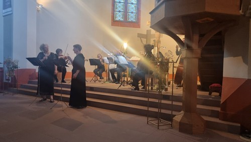 Einen zauberhaften Sommerabend erlebten die ZuhörerInnen bei einem Benefizkonzert der Kirchengemeinde Neureut-Nord der Katholischen Kirchengemeinde Karlsruhe-Hard am vergangenen Sonntag. Werke von Vivaldi über Bach und Allegrini wurde von einem Streichseptett und zwei Sängerinnen aufgeführt und füllten die Nordkirche in einen ganz besonderen und fast zauberhaften Klang. Mühelos ließ sich das Publikum zu manch leichtem sommerlichen Gedanken entführen und dankte es mit begeistertem Applaus. Und nicht nur das: Über 600 Euro Spenden konnten an diesem Abend für den Diakonieverein Neureut und das Bündnis Soziales Neureut gesammelt werden. Die MusikerInnen konnten so gleich eine doppelte Freude machen.