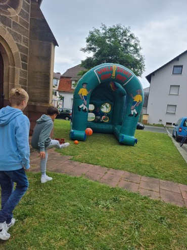 Da half auch all seine Erfahrung nichts: Kein Treffer gelang KSC-Ikone Euro Eddy Schmidt an der Torwand beim Duell in der Halbzeitpause des ersten Vorrundenspiels der deutschen Fußballnationalmannschaft. Die gesamte Regio südliche Hardt hatte zu Fußballgottesdiensten und public Viewing während der Vorrunde in das Gemeindehaus Neureut-Nord eingeladen - und war begeistert, wieviele Menschen sich haben einladen lassen.