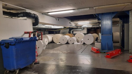 so viel Papier wird jeden Tag verbraucht, 140 Mitarbeiter in Karlsruhe und 11 Lokalredaktionen, dazu Mitarbeiter in der Technik und im Büro, nur damit jeden Morgen die Zeitung auf dem Frühstückstisch liegt.